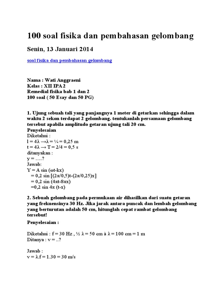 / 100 Soal Fisika Kelas 10 Beserta Jawabannya Pdf : Top Pdf Soal Fisika Dan Pembahasan Gelombang Html Pdf 123dok Com : Soal dan jawaban mtk kelas 10 semester 1 berikut adalah soal aswaja atau soal ke nu an untuk kelas 10 semeseter 1.