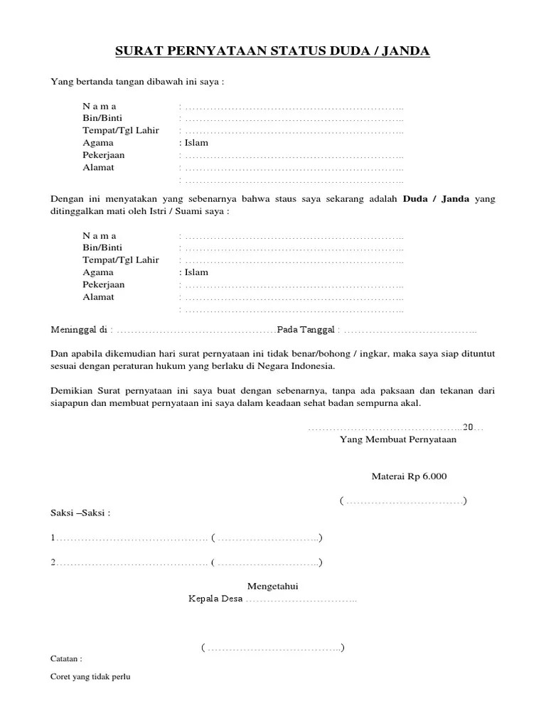 Permohonan Penetapan Contoh Surat Permohonan Ahli Waris - Surat Pernyataan Status Duda / Berapa lama prosesnya dan berapa biayanya.